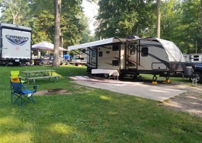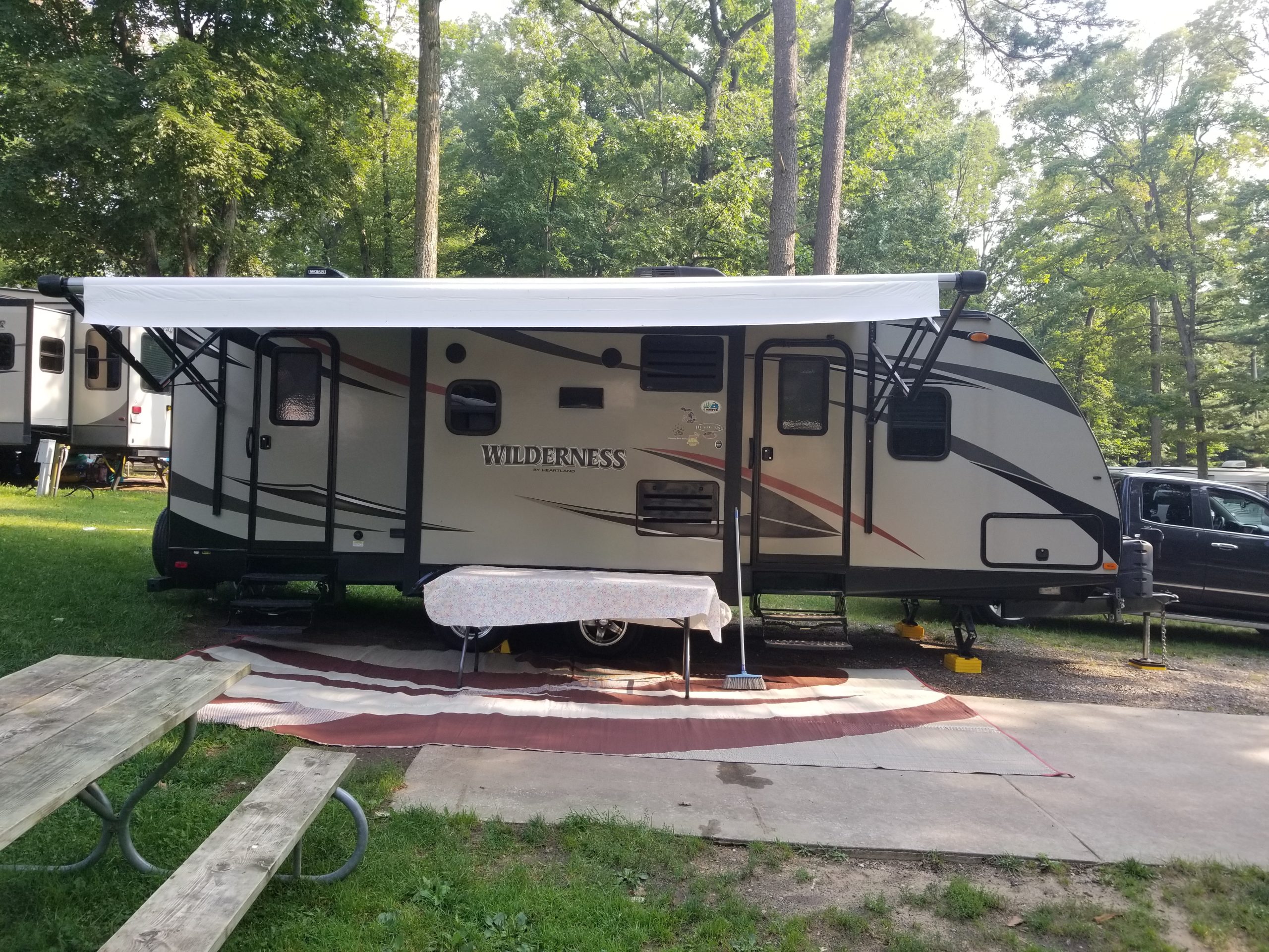 INCLUDED IN PRICING: 6 outdoor chairs, basic cookware and dishes for up to 8 people, coffee maker, toaster, starter cleaning supplies, RV-approved toilet paper. Renter is responsible for bringing bedding. Campsite fee is not included.